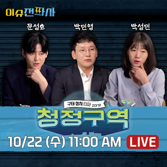 [<청정구역>박성민(더불어민주당), 박민영(국민의힘), 문성호(개혁신당) 출연(10/22 수 오전 11시)]