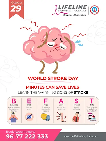 #WorldStrokeDay #StrokeAwareness #ActFAST #LifelineHospitals #ChennaiHospital #BrainHealth #EmergencyCare #SaveLives #KnowTheSigns #StrokePrevention #HealthAwareness #MinutesCanSaveLives