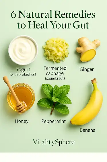 🌀 6 Natural Remedies to Heal Your GutPoor digestion, bloating, constipation, gas? Your gut might be inflamed — but nature has the cure.🥣 Yogurt (with probiotics) – Restores healthy gut bacteria.🥬 Fermented cabbage (sauerkraut) – Powerful probiotics + enzymes.🫚 Ginger – Reduces inflammation and boosts digestion.🍯 Honey – Soothes gut lining and acts as a prebiotic.🌿 Peppermint – Relieves cramps and bloating.🍌 Banana – Gentle on the stomach, restores electrolytes & gut balance.✨ Morning gut-healing drink: warm water + honey + ginger + lemon (optional).👉 Tap to explore more natural remedies on vitalitysphere360.com#VitalitySphere360 #GutHealing #NaturalRemedies #HolisticHealth #DoctorApproved #HealingFromWithin