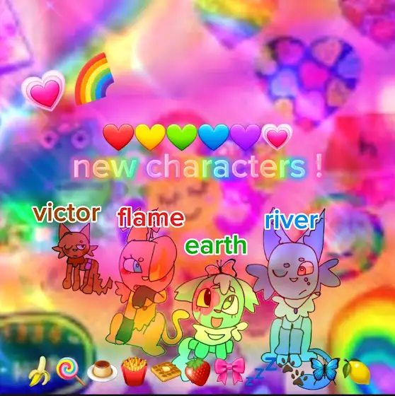 🔥Flame: "Ugh we've been walking for ages" (tired) "when will we find a place to stay?" "Ah! Danger!" "But that was-" "A cat?" "What's your name?" "Victor? Interesting, come with us"🌈🍟