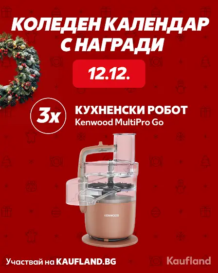 🎅 Ден 12 от нашия Коледен календар и имаш шанс да спечелиш един от 3 кухненски робота Kenwood MultiPro Go. 👩🍳 Как да се включиш? 1️⃣ Влез на kaufland.bg/koleden-kalendar-yt 2️⃣ Отвори прозорчето за днешната дата 3️⃣ Попълни кратката форма и готово *Можеш да се включваш веднъж на ден. 🔁 **Наградата е активна само за 24 часа. ⏳ Успех на всички! ❤️ #kaufland #kauflandbulgaria #кауфланд #xmas25 #коледнакалендар #adventcalendar #награди #игра #game #nonfood