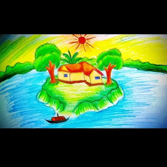 Beautiful Village Scenery Drawing