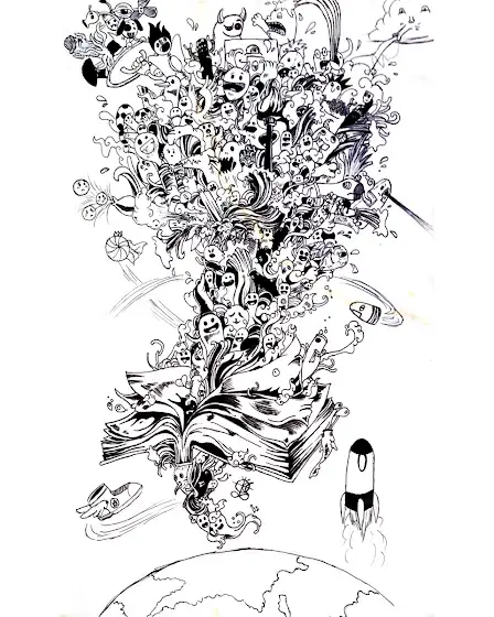 source/inspo: doodle invasion: zifflin's coloring book (original illustration by kerby rosanes)