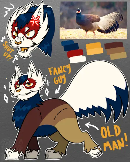 Made another cat, an old kitty, this time inspired by a pheasant. I'd like to think it's related to the cockatiel cat. It doesn't have a name yet (it won't be a warrior)