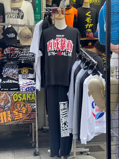 大阪、通天閣側の服屋さんで凄いデザインのセットアップが売っていました。