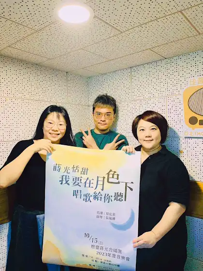 佑君老師、行銷組長去錄 #傾聽音樂,和主持人 咖啡貓aka楊盈箴 聊聊煦豐蒔光這一年的轉變以及 10/15 的年度音樂會 #蒔光恬甜我要在月色下唱歌給你聽 。