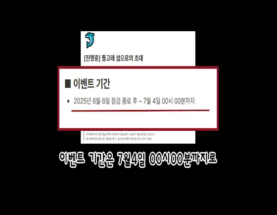 돌고래 이벤트가 금일 23:59까지입니다잊지 말고 돌고래 던전 다 깨시고 코인 교환까지 해주세요물안경은 8월 1일 00시까지 / 이벤트 참여 및 교환은 오늘까지입니다
