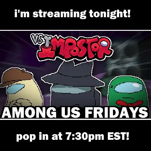 i'm streaming updog dev AMONG US FRIDAYS tonight at 7:30 est!! pop in