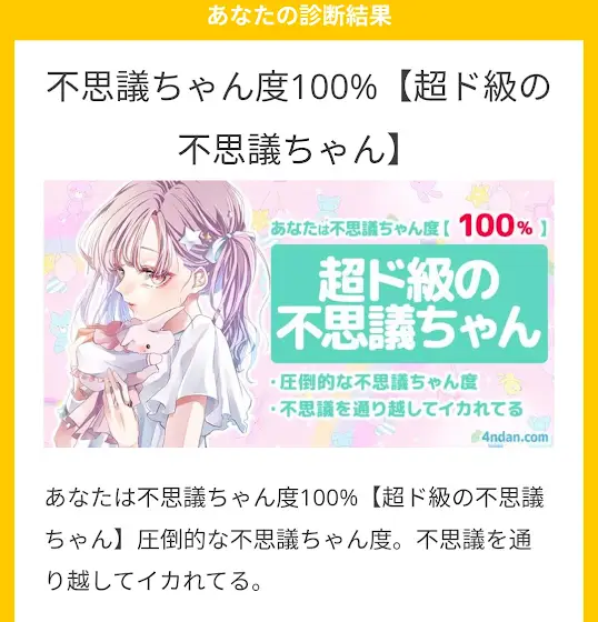 これもごとうちゃんがやってたのでやってみました〜100%!?私もイカれてたっぽい…あ〜あと絵はもうちょっと待ってくださいほんとに頑張って今年中に描きたいと思ってるので