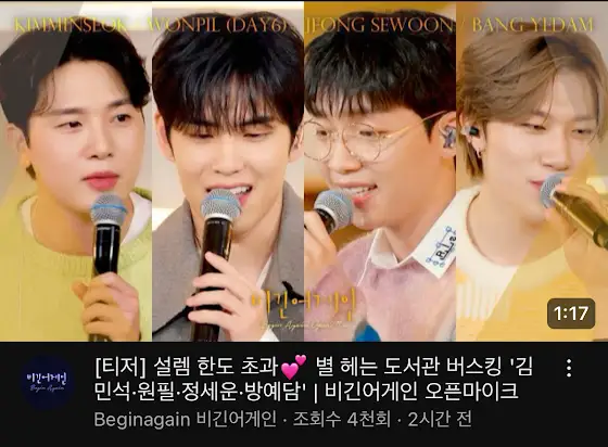 비긴어게인 김민석•원필•정세운•방예담 조합 및였네요????????? 저 진짜 잠 안옵니다 3.12.화 본방사수!!!