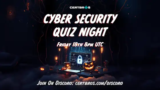 Spooky season is here, and so is the CertBros annual Halloween Cybersecurity Quiz Night! Join us this Friday on our Discord server as we celebrate Cybersecurity Awareness Month with spooky questions and great prizes. This event is for all levels, so whether you're a beginner or an expert, everyone is welcome!⭐️ 1st Prize: The exclusive, money-can't-buy CertBros Quiz Champion T-shirt (bragging rights included!) 🥇 2nd and 3rd Prize: Discord Nitro for those who come close to glory! Sign up now and mark your calendar: www.certbros.com/discordLet's see who will be crowned the Quiz Champion this Halloween!