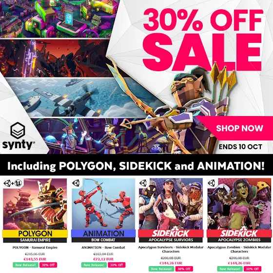 There's a Synty sales going on! I'm currently working on a project/review for their Samurai pack and can already say it's amazing and one of my absolute favourites. Sidekick packs are on sale, too!