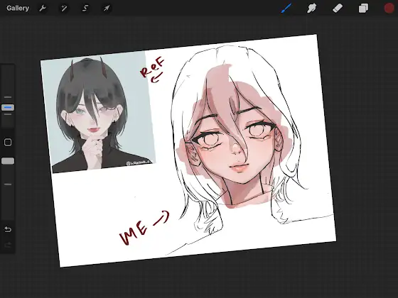 I was drawing and then i did whatever is this I MEAN THIS IS NOT MY STYLE BUT ITS SOOOO GOOD IDK HOW I DID IT T^T ( the ref photo is not mine its a ref that i made from pecrew)