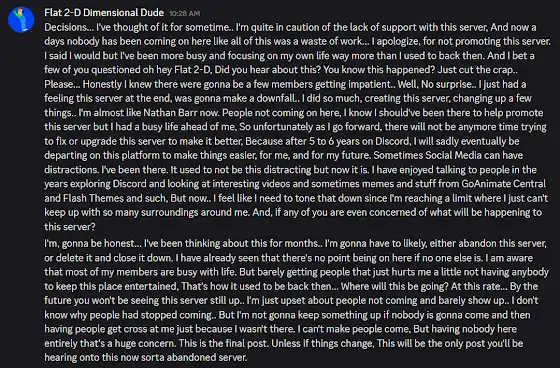 Announcement about plans of why my own Discord server might get discontinued...