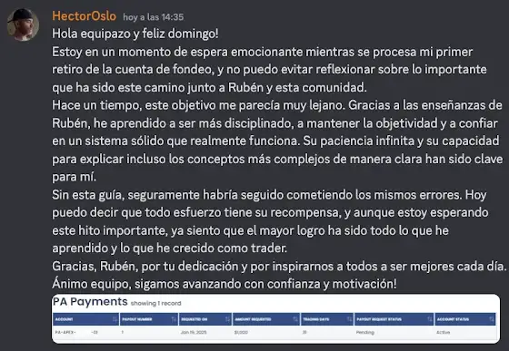 Enhorabuena a Héctor, alumno de mis formaciones, que ha hecho su primer retiro de 1000€ de su cuenta fondeada...
