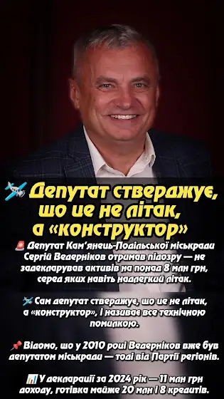 🚨 Депутат Кам’янець-Подільської міськради Сергій Ведерніков отримав підозру — не задекларував активів на понад 8 млн грн, серед яких навіть надлегкий літак.