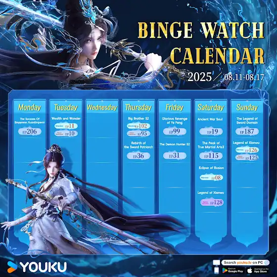 Binge-watch calendar for the coming week! 🥳🥳🥳 🎉Watch non-stop, right on time!🎉 #YOUKU #YOUKUANIMATION #YOUKUENGLISHANIMATION