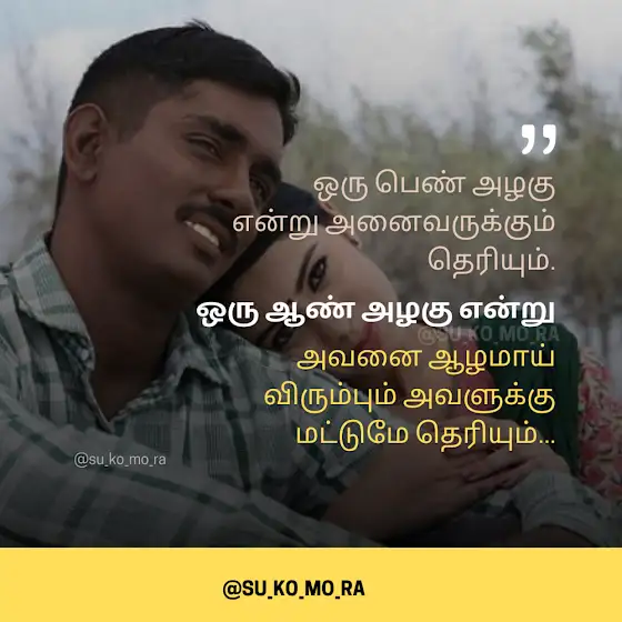 ஒரு பெண் அழகு என்று அனைவருக்கும் தெரியும். ஒரு ஆண் அழகு என்று அவனை ஆழமாய் விரும்பும். அவளுக்கு மட்டுமே தெரியும்...