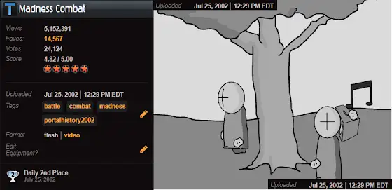 Trivia fun fact; Madness Combat 1 is a 23 year old cartoon as of today. It was completed and uploaded to Newgrounds.com on July 25th, 2002. It's been an insane ride through dozens of my cartoons, THOUSANDS of your cartoons, a bunch of games, a mountain of art, and we're not even close to being finished. Thank you guys for following along on this crooked, weird adventure.