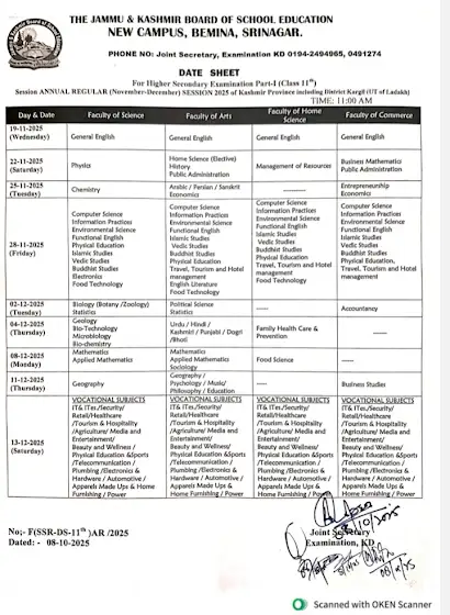 Class 11th datesheet