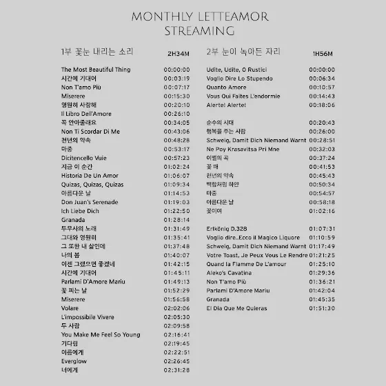 #스트리밍 하는 김에 오늘은 1부와 2부 이어서 하고요.내일 낮에 2부만 따로 다시 할게요.내일 럭키드로우 있음:)#마치 공연 두 땅 뛰는 느낌이라…스트리밍 리스트 대로 안 보시고 자유롭게 보셔도 되겠금 상세보기로 재생타임 북마크 했어요. #지나도 일주일정도는 다시 보실 수 있으니까 편안하게 할 일 하시면서 보시길#월간레떼 4월