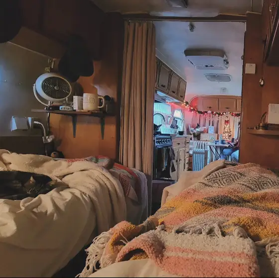 Got up, made coffee, stretched the kinks out of my sore muscles, then everyone crawled back into bed to lounge the dreary morning away in our cozy little Avion trailer. Love these slow mornings at Christmas time! Hope everyone is having a great holiday season so far!