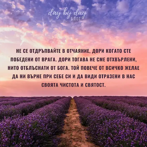 Не се отдръпвайте в отчаяние, дори когато сте победени от врага. Дори тогава не сме отхвърлени, нито отблъснати от Бога. Той повече от всичко желае да ни върне при Себе Си и да види отразени в нас Своята чистота и святост.