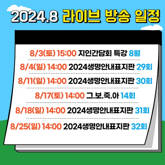 8월 라이브 방송 일정입니다.