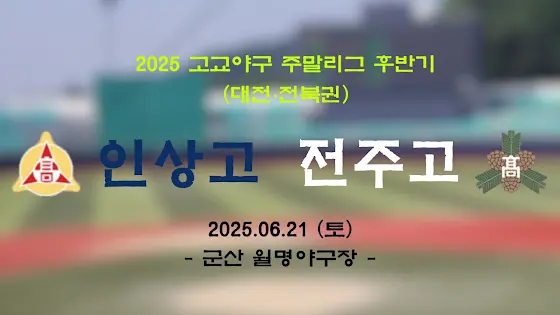 <📣 주말리그 중계 예고>⏰ 2025. 06. 21 (토) 14 : 30🆚 전주고🏟️ 군산 월명야구장 ✅ 생중계 예정* 이 중계가 올해 <2025_인상고야구부> 채널의 공식경기 마지막 중계방송이 되겠습니다. 그 동안 주말리그와 전국대회 중계를 시청해주셔서 대단히 감사합니다.** 경기는 날씨 또는 경기장 사정으로 인해 취소될 수 있으며, 취소 시에는 다시 공지 올리도록 하겠습니다.