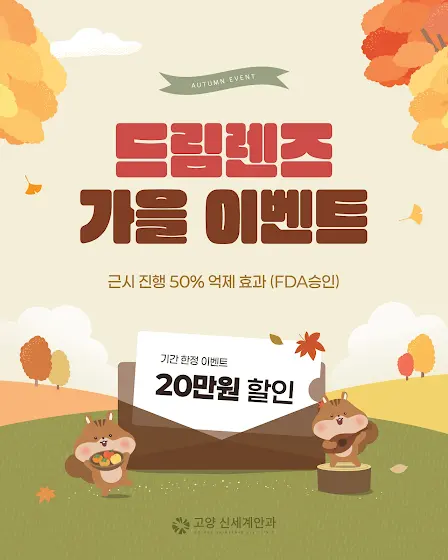 가을은 아이가 한 뼘 더 자라는 계절, 이제는 눈도 지켜줘야 할 때입니다 👀🍁 🌙 밤엔 착용, 낮엔 선명한 시야 📚 공부·운동·일상에서 안경 없는 자유 ✔ 근시 진행 50% 억제 효과 (FDA 승인) 지금, 기간한정 드림렌즈 이벤트 진행 중! 올가을에는 아이의 눈에 맑은 세상을 선물하세요