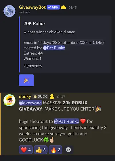 20k Robux Giveaway going on in my discord btw🎉