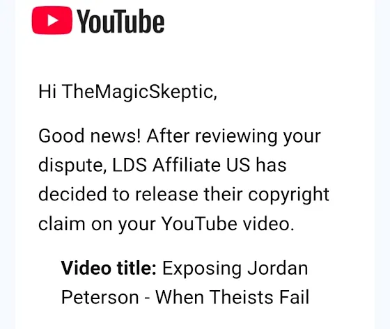 I have excellent news. My video about Jordan Peterson's appearance on Jubilee has been released from copyright prison. So I'm delighted to announce that the video will go live this coming Saturday. Thank you for your patience while this situation was being resolved.