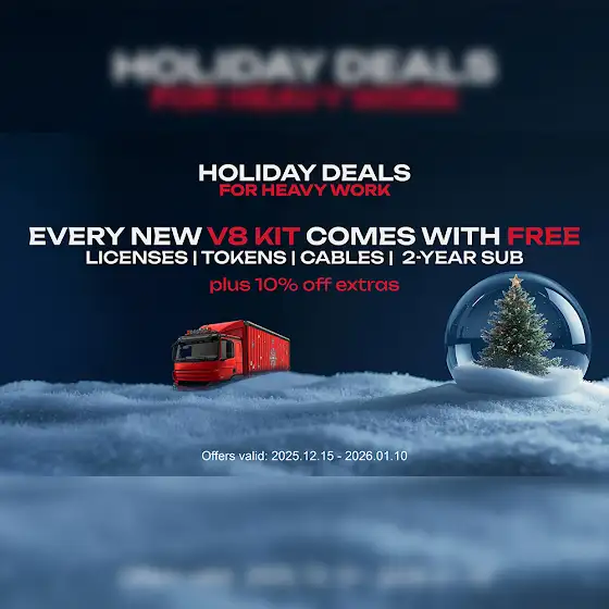AutoVEI Christmas / Winter Offer 2025 ❄️🎄🚚 Nowe Truck Explorer Kits w regularnej cenie, ale z wartościowymi prezentami 🎁🔹 Revolution - +300 tokenów + 1 rok subskrypcji🔹 America - licencja GS1 + kabel GS1 + 1 rok subskrypcji🔹 Standard - licencja MCM2 + 1 rok subskrypcji🔹 Locksmith - licencja Volvo Keys + 1 rok subskrypcji🔹 Chipallino - +600 tokenów + 1 rok subskrypcji🔹 CPC Kit - licencja CPC5 + kabel + 1 rok subskrypcji🔹 Scantic - licencja EBS + kabel EBS5 MAN (Scania EBS5) + 1 rok subskrypcji🔹 Ivetic - licencja MF3 + kabel + 1 rok subskrypcji🔹 DoberMAN - licencja ZBR2 + kabel + 1 rok subskrypcji🔹 MB FULL - licencja CPC5 + kabel + 1 rok subskrypcji🔹 PRO25 - licencja CPC5 + kabel + Volvo KEYS + 1 rok subskrypcjiℹ️ Cena kabla dodawanego w prezencie jest wliczona w cenę zestawu sprzętowego.🔥 Dodatkowo -10% rabatu na:✔️ dodatkowe licencje✔️ tokeny✔️ subskrypcje👉 Sprawdź zestawy w naszym sklepie:🔗 atomis.net/pl/4722-zestawy-urzadzen-Promocja obowiązuje od 15.12.2025 do 10.01.2026.