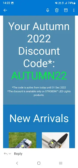 Flytron are offering a Discount Code on some of their Strobe lights and other products. If you're in the market to buy some CAA and FAA compatible Strobes, then use this Discount Code and save yourself some money. Happy flying folks and have a great weekend 😀