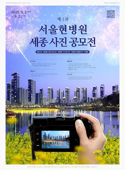 제 1회 서울현병원 <세종 사진 공모전>을 개최합니다! 📢자세한 내용은 아래 링크로 접속해서 확인해주세요!blog.naver.com/seoulhyunos/223990865769