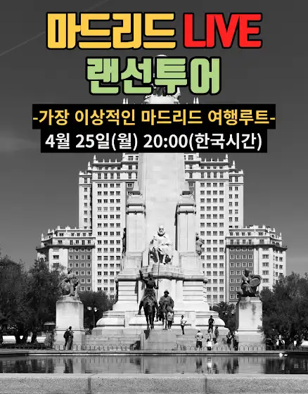 마드리드 라이브 방송 공지합니다! 📢최근에 가장 이상적인 마드리드 여행 루트 영상을 올렸는데요.말씀드린 코스대로 제가 직접 한 바퀴 돌아보려고 합니다.여행을 준비하시는 분들에게는 도움이 되셨으면 하고요.이미 다녀오신 분들에게는 추억을 되새겨보는 시간이 되었으면 합니다.📌일시 : 4월 25일(월) 저녁 8시(한국 시간)10분 전에 카메라 열겠습니다. 잠시 인사 나누고 정각 8시에 출발하겠습니다.내일은 날씨가 무척 좋습니다. 많은 분들의 참여를 기다릴게요~~😆🥰😁-