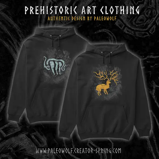 Clothing with prehistoric art is available in our merch shop! These hoodies feature authentic art created by Paleowolf. Browse and explore these and more merch at:paleowolf.creator-spring.com/hoodies-sweatshirts