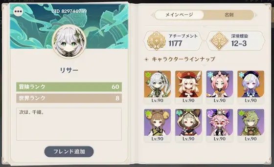 v4.4現在のアチーブ理論値は、どうやら1185(1187)ではなく、1183(1185)だったみたいだ。ずっと1185(1187)だと思ってたから、デイリーアチーブを全て獲得出来ても足りない、、、ってなってたけど、これなら抜けは0となり、下記デイリーアチーブ全てを獲得出来れば、理論値に辿りつけますねw璃月のデイリー未獲得アチーブ・四方で剣を求めん・万里の道を行く…?稲妻のデイリー未獲得アチーブ・瞳の中の偽装者・真実はいつも一つ…?スメールのデイリー未獲得アチーブ・リラックス療法・香り漂うお守り