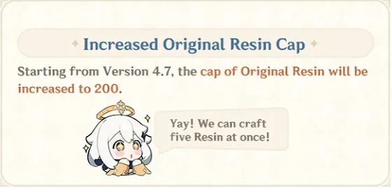 What do you think about the new resin cap increase to 200? I think its useful for some players that just do dailies, but for the majority that play more and grind its the same.