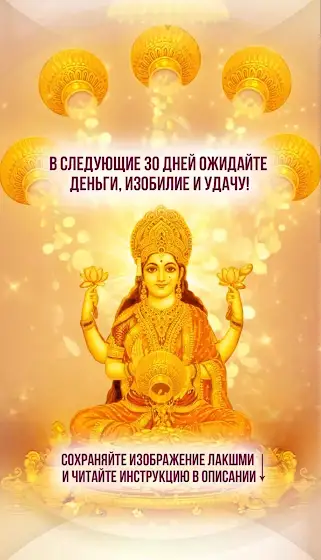 ИНСТРУКЦИЯ ДЛЯ ПРИВЛЕЧЕНИЯ ПРОЦВЕТАНИЯ И ДЕНЕГ В БЛИЖАЙШИЕ 30 ДНЕЙ💸 Благоприятно начать читать мантру Богине Лакшми в течение 30 дней, чтобы впустить в жизнь Процветание, Богатство и Достаток! 👑Богиня Лакшми олицетворяет Любовь, Богатство и Красоту. Она помогает каждому, кто обращается к ней.💗 Чтобы активировать Удачу, в буддийской традиции почитают Лакшми и читают ей весеннюю мантру:1. Посмотрите на изображение 3-4 мин и обратитесь к Богине с просьбой направить на Путь Процветания и Счастья. Загадайте желание!🌟Произнесите мантру:«ОМ ЛАКШМИ ВИГАН ШРИ КАМАЛА ДХАРИГАН СВАХА».3. Ставьте ❤️ на принятие Благ и пишите в комментариях для усиления намерения данную мантру!4. Повторяйте мантру ежедневно в течение 30 дней 108 раз при этом представляйте, что ваше желание уже исполнилось!🙌👑 Богиня Лакшми наполнит вашу реальность Деньгами и Изобилием. При этом она даст именно столько благ, сколько вы готовы для себя принять.