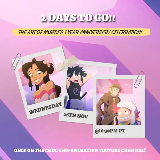 Join us for the live watch party on the Choc Chip Animation YouTube channel on 26th Nov @ 6:30pm PT for the festivities! Filled with exciting VA and artist segments, Sketchbook 2 sneak peeks and more! We canβt wait to see you all there!! π₯³π