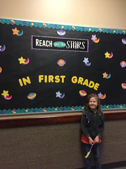Emma will be starting the FIRST grade next week and had her back to school night today. She's excited and we can't believe how fast she's growing! ✏️