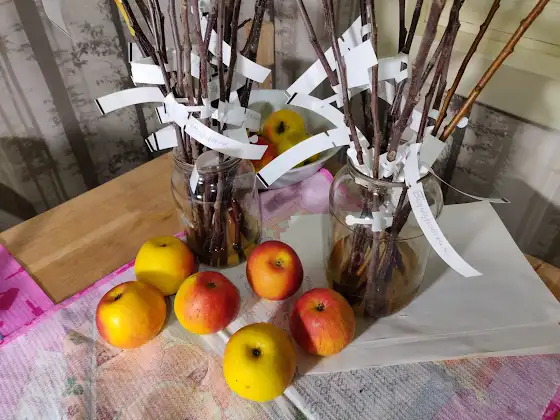 23 февраля поставил на проращивание черенки яблони разных сортов. Сегодня посмотрел предварительно их состояние. Есть подмерзания у сортов Дыямент и Моди на плохо вызревших макушках.