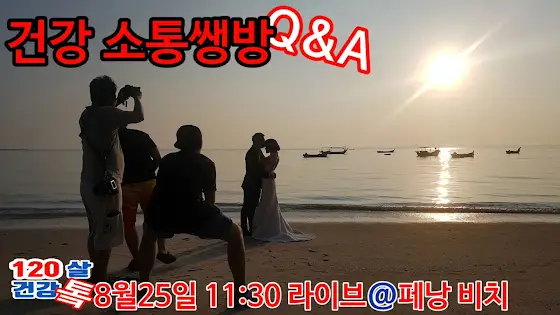 안녕하세요,8월25일(화) 오전 11시30분에120살 라이브 건강톸 소통생방을 시작합니다.페낭 비치에서 페낭의 파도소리와 함께하는,라이브에 많은 참여와 소통을 기대합니다.(댓글로 많은 사연과 문의 주세요~👍💖🙏)