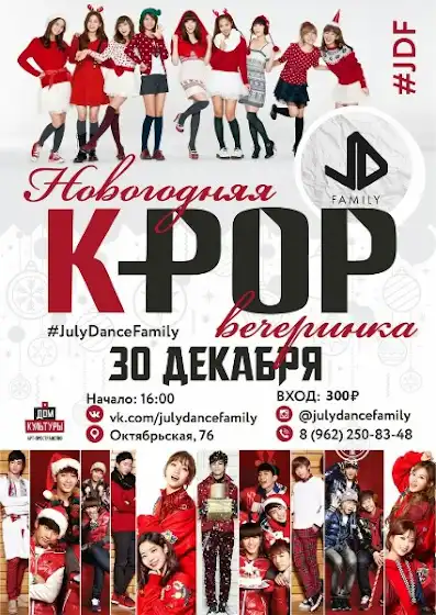 Калининград❗ Совсем скоро вас ждёт самое крутое завершение года❗✨✨✨ Новогодняя #KPOP вечеринка❕🎄🎅🎁💫 📌 30 декабря к ⃣⃣ часам мы ждём всех кпоперов города на самые грандиозные проводы уходящего 2018 года❕💥💥💥 📌 Что вас ждёт? - Дискотека 🕺 - Танцевальные баттлы 🆚 - Random Dance Challenge 🔈 - Конкурсы 🎆 И многое многое другое❗⭐🎇 📌 Место проведения: Октябрьская 76 "Арт Пространство" Зал "Бочки" 📌Стоимость: 300 рублей за вход 💴 (в стоимость входят бесплатные напитки, призы и подарки за баттлы и хорошее настроение в неограниченном количестве) 📈 Записаться на баттлы можно обратившись к Диане 🔴Обязательна предварительная запись на вечеринку❗ Вход по спискам📝 Количество мест ограничено❗ Приходи сам, приводи друзей и оторвись вместе с нами❗ #jdf #julydance #jdfamily #julydancefamily #kaliningradkpop #kpop #kaliningrad