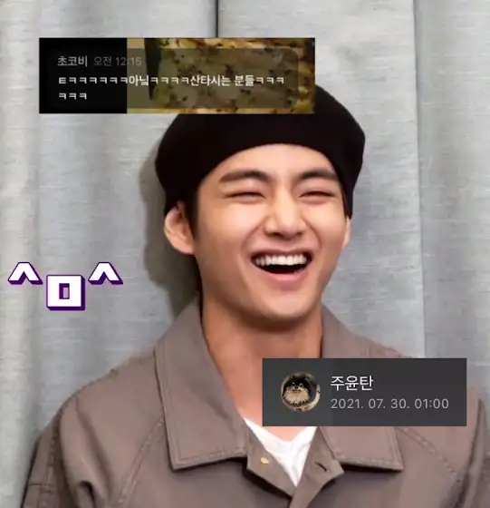산악회분들 피치스(Peaches) 따라 부르길래 직접적인 언급해도 되나 고민하다 ‘산타시는 분들’이라고 남긴 댓글 읽어 준 정구기😭 게다가 주윤탄씨(태형)가 방구석 콘서트 보고 위버스까지 와준 밤이라 밤새 들떠서 주접과 영상 몇개 만들다보니 벌써 아침이 왔어요☀️ (아직도 기분 둥둥☁️ 영상은 오늘 중간중간 올라갈 예정❣️) 바쁠텐데 요즘 밤에라도, 잠깐이라도 와주고 행복하게 해주는 탄이들 고마워💜💜💜보라해💜💜 아미분들도 모두 오늘 행복한 하루 보내세요💜