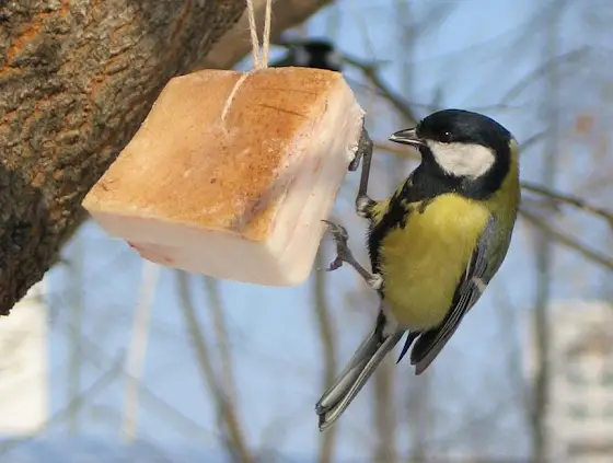 Зимой птицы нуждаются в помощи человека. Кормим синиц семечками и салом.