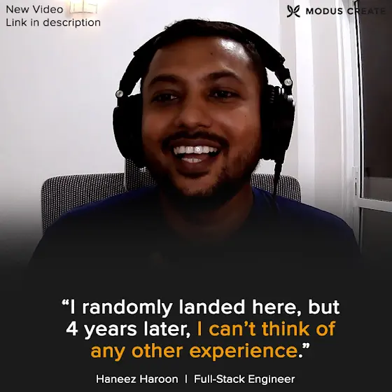 We have consultants from all over the world with different backgrounds. Haneez made a switch from being an entrepreneur to becoming a consultant at Modus