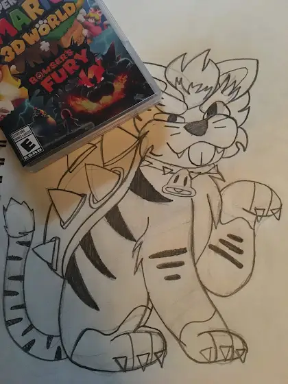 Little drawing I did of meowser. Was inspired by the fact I recently obtained the newest edition to the mario series, Super mario 3D world + Bowsers fury.
