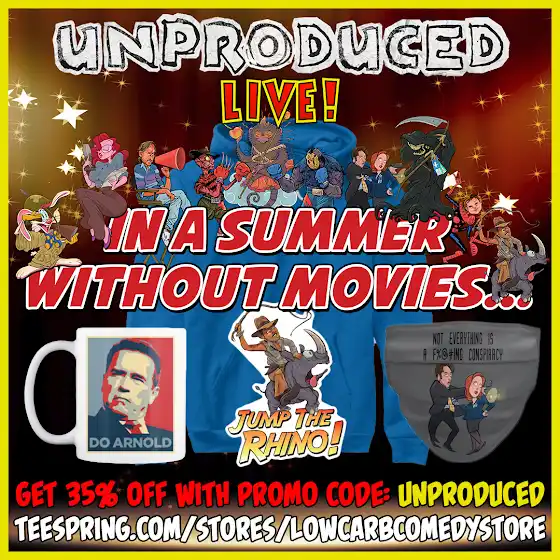 Celebrate the season finale of UNPRODUCED LIVE! with new shirts, mugs, masks, and more! For a limited time GET 35% OFF with promo code: UNPRODUCED VISIT THE STORE: teespring.com/stores/lowcarbcomedystore•Art by Max Bare•#unproducedlive #sale #arnoldschwarzenegger #indianajones#thexfiles #rogerrabbit #freddykrueger #jasonvoorhees#finaldestination #spiderman #jessicarabbit #lowcarbcomedy